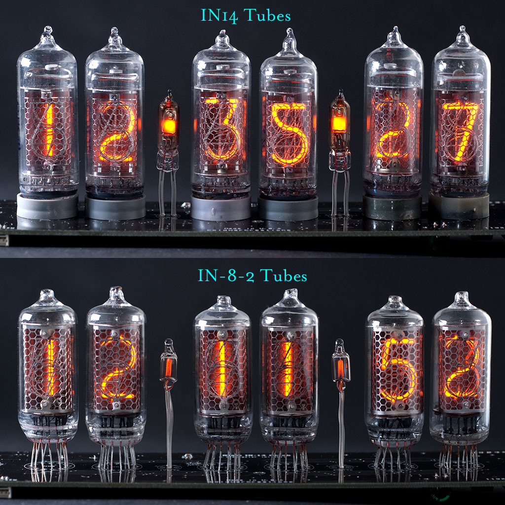 The IN-8-2 tubes are more expensive than the IN-14's, and give a different look to the Glass Clock.
